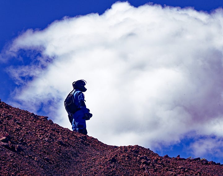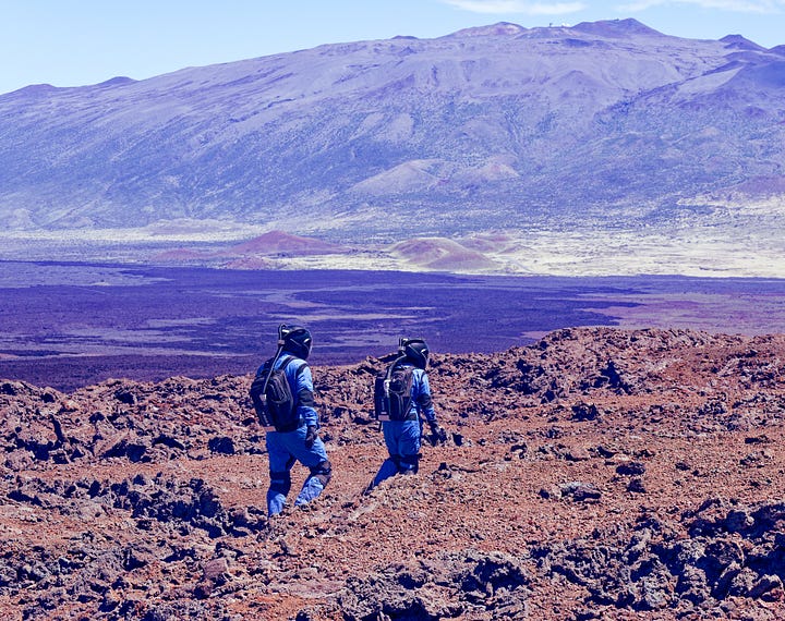 When humans decided to simulate life on another world, they came to a place like this — 8,200 feet up on the slopes of Mauna Loa, where the volcanic rock stretches out in every direction and the horizon looks like it belongs to a different planet.